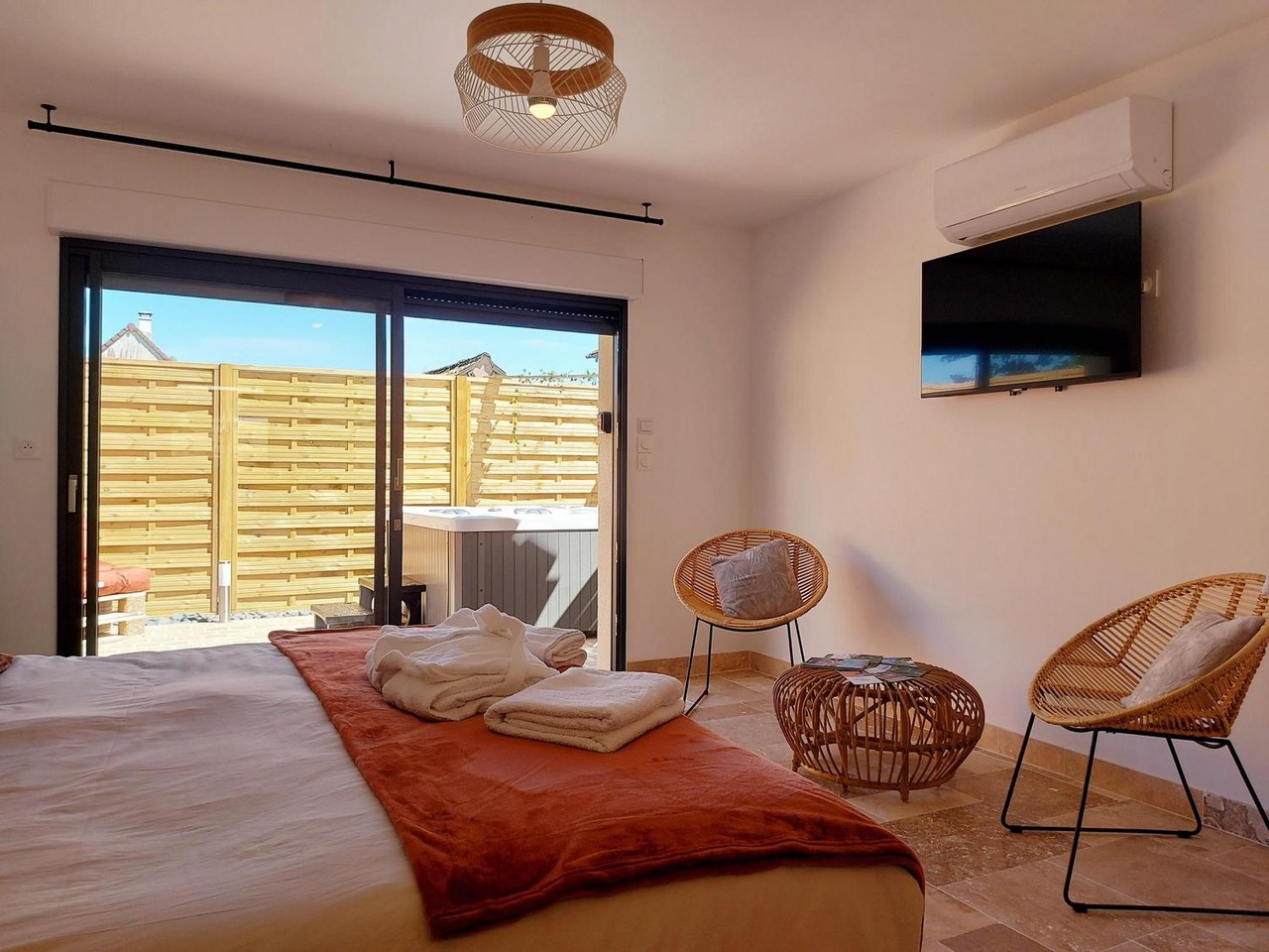 Notre galerie photo vous invite à plonger dans l'univers du Clos de la Montignoise. De la délicate décoration de nos lodges à la splendeur naturelle du Perche, chaque image raconte une histoire, celle d'un séjour où la beauté et le bien-être se rencontrent.
